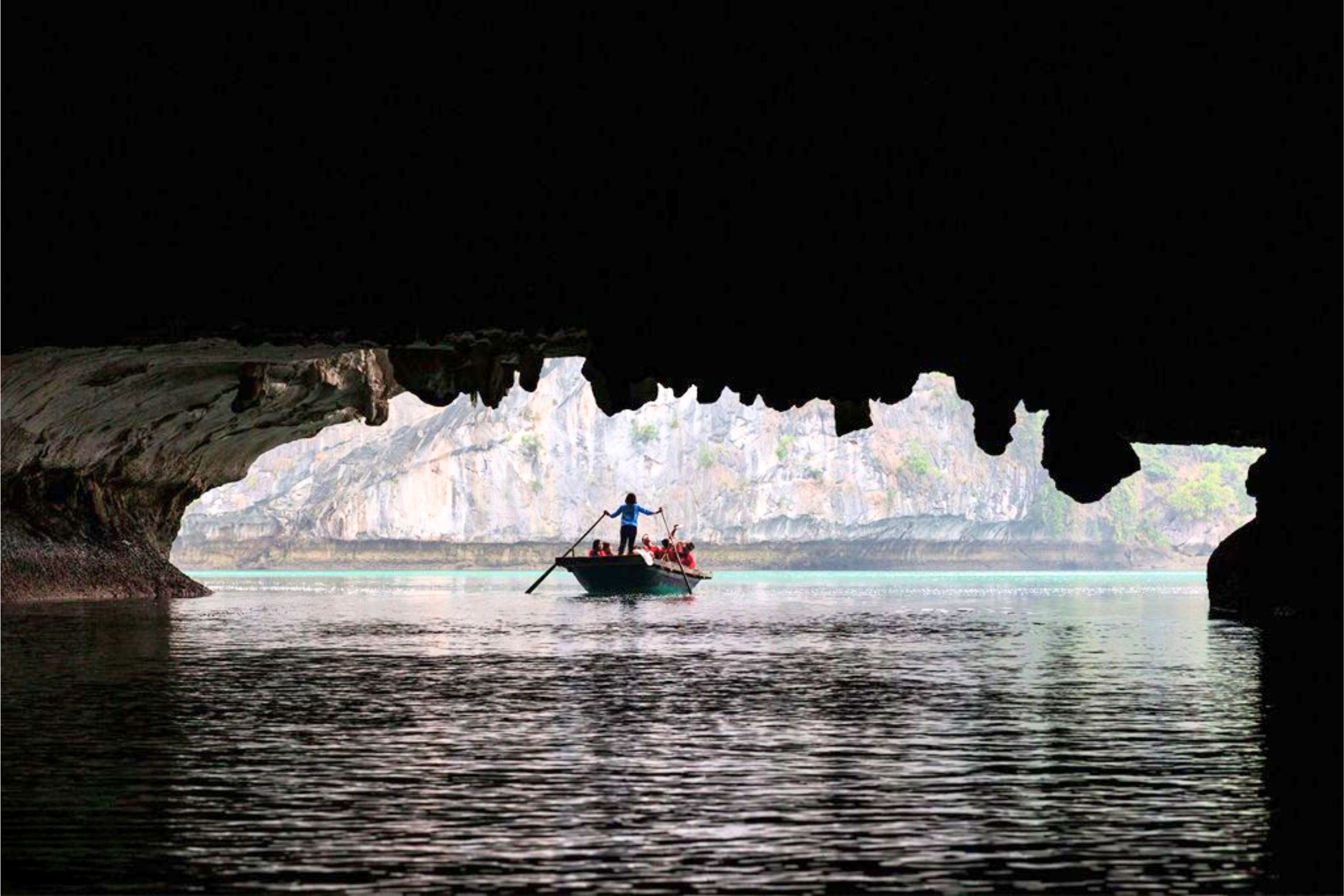 14:30 – 15:30 Visit Dark & Bright Cave by bamboo boat rowed by the local fishermen, a serene round lake surrounded by lush trees and high stone cliffs.